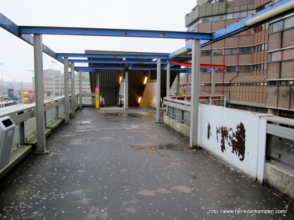 Traverse voormalig eindpunt tram naar station. Links achter de blauwe borden stonden ooit de taxi’s.